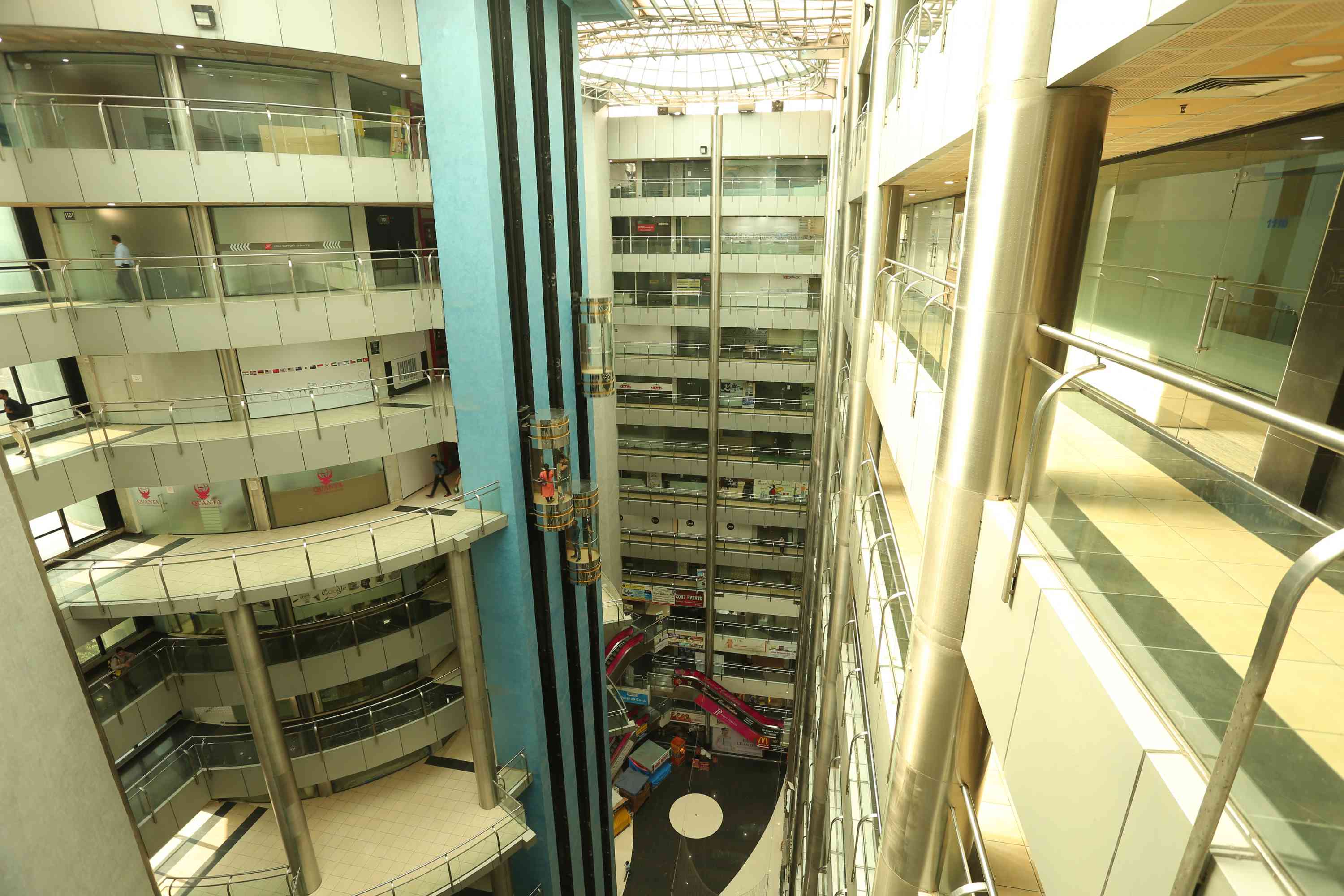 Dmall Pitampura is one of a kind property, located in the North-West Delhi. It was the first retail and office landmark in the entire North and West region of Delhi due to its full frontal Glass Facade. This unique architecture provides a protective sheath that protects occupants of our building from heat, noise, fire, and even from dirt and grime through self-cleaning properties. Reflective glass controls solar radiations and low-e glass acts as a thermal insulator during winters. Its infrastructure is made up of a glass building consisting 12 floors plus three level basement parking. It has a mesmerizing atrium which has some latest brands like Haldirams, Cafe Coffee Day (CCD) , McDonald’s, 24x7, Kake di Hatti and many more respected names. The mall’s location and architecture makes it an envious buy for those who are avid investors and connoisseurs. With over a decade of successful partnerships with major Indian brands, Dmall boasts of first-in-its-class Glass Facade that helped landing it as a popular backdrop for many Bollywood movies and advertisements. The façade, atrium, walkways and corridors of D Mall represent a rare fusion of convenience, styling, safety and visibility.